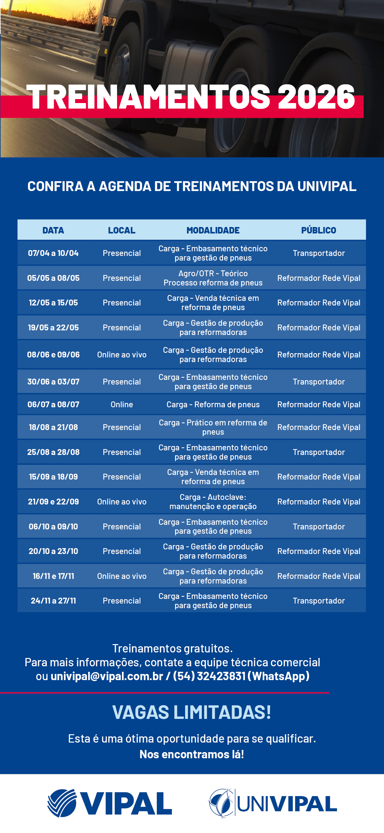 Agenda de treinamentos 2026